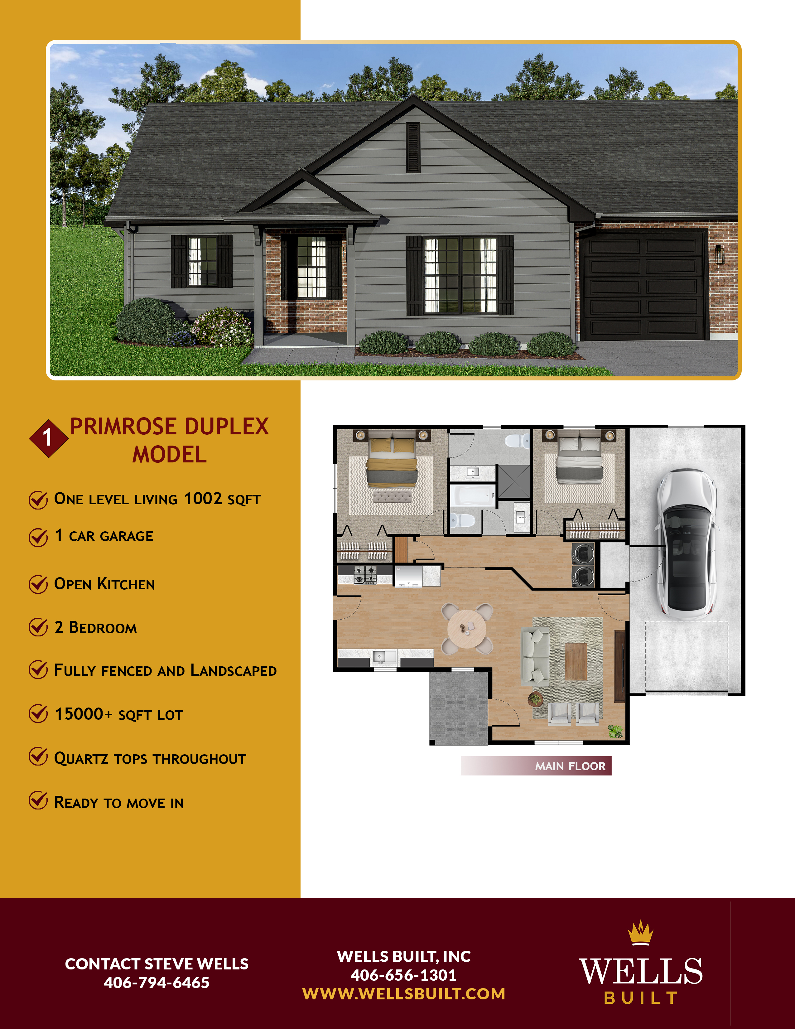 Welcome to Wild Rose, Northwest Billings’ newest subdivision featuring an extensive park and trail system. The Primrose plan is designed for low-maintenance living with HOA-covered exterior insurance (studs-out), snow removal, and reserve funds. Lots of off street parking, solid surface flooring and granite tops through out make for happy living!